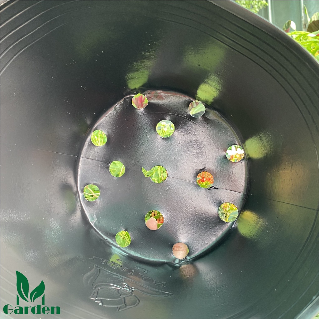CHẬU NHỰA ĐEN C11 Kích thước : - Đường kính mặt chậu : 26cm - Chiều cao : 23cm 👉 Chậu nhựa ươm cây được sản xuất từ nguyên liệu nhựa HDPE đen bóng đẹp dai. 👉 Chậu nhựa Liên An có độ bóng đẹp, cầm nhẹ tay, mềm và có độ dày và đặc biệt dai. 👉Độ bền cao, ch