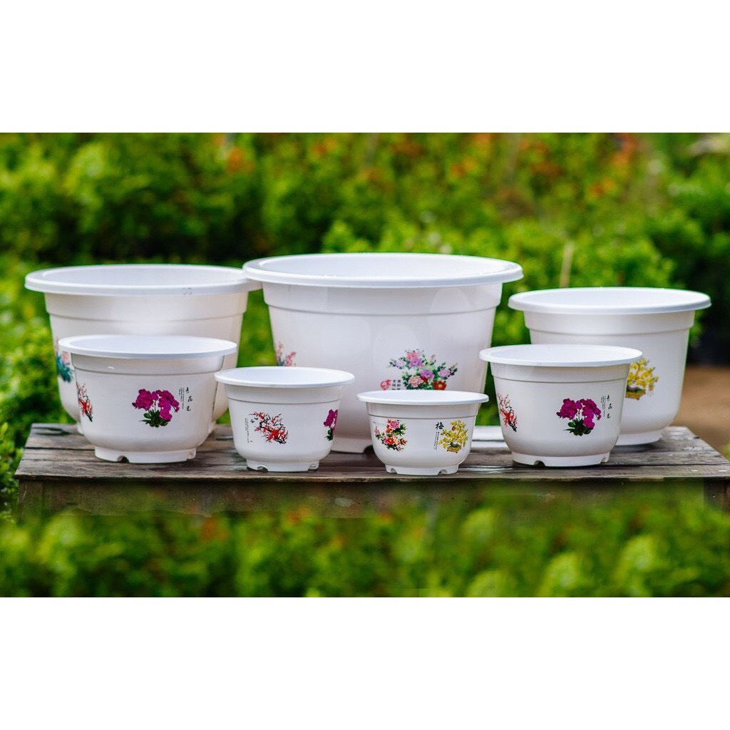 Làm bằng chất liệu nhựa cao cấp, chịu nhiệt tốt, không phai màu dù để ngoài nắng, mưa. Xuất sứ: Tất cả sản phẩm đều có xuất sứ Việt Nam. Chậu nhựa in hoa, thiết kế đơn giản, sang trọng, đẹp mắt, phù hợp trang trí cây cảnh nội ngoại thất Kích thước A250: rộng 22cm x cao 13cm x đáy 12cm A280: Rộng 25cm x cao 15cm x Đáy 14cm A300: Rộng 27cm x cao 18cm x Đáy 17cm A 330: Rộng 30cm x cao 20cm x Đáy 17cm A360: Rộng 33cm x cao 22cm x Đáy 18cm A 380: Rộng 35cm x cao 23cm x Đáy 20cm Màu sắc: trắng in hoa sen, đào, tùng, mai Dt; 0888.28.3663