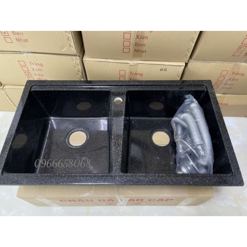 CHẬU RỬA CHÉN ĐÁ NHÂN TẠO - Sản phẩm gồm Chậu Đá + Xiphong ống xả 304 .- Chống ồn, không móp méo cứng cáp hơn so với châu INOX truyền thống. - Sản phẩm chậu đá 2 hộc .- Dễ dàng lắp đặt lắp âm, lắp nổi đều được .- Chống va đập, chống ồn khi xả nước. - Màu sắc: đen ( có