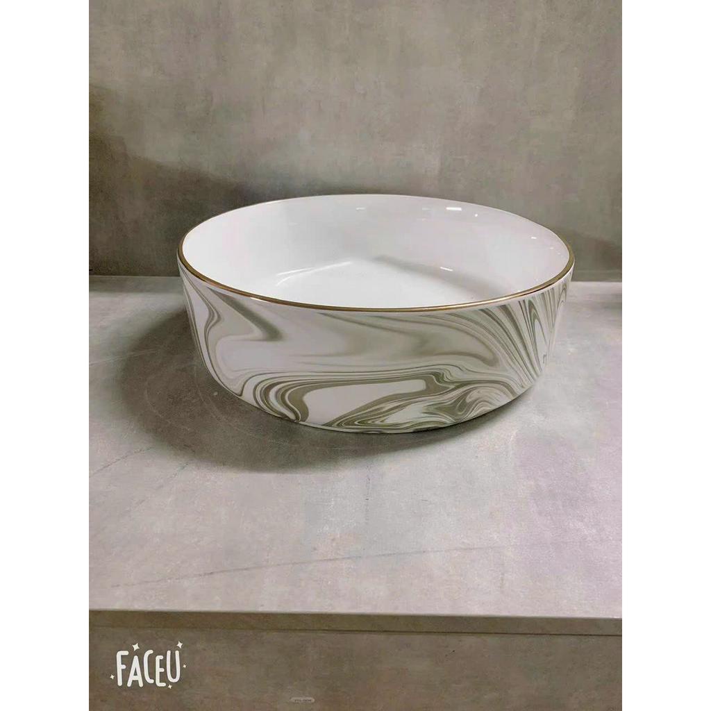 Chậu rửa mặt lavabo Đặt Bàn Đá LA17 HOA VĂN VÂN ĐÁ VÀNG, men NANO trắng sáng chống ố chống bám bẩn LAVABO LỚN