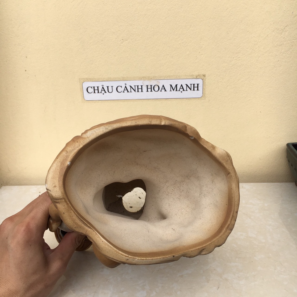 Chậu tượng lỗ trí thâm cõng đá bonsai sen đá mini gốm Bát Tràng 1 size SP499