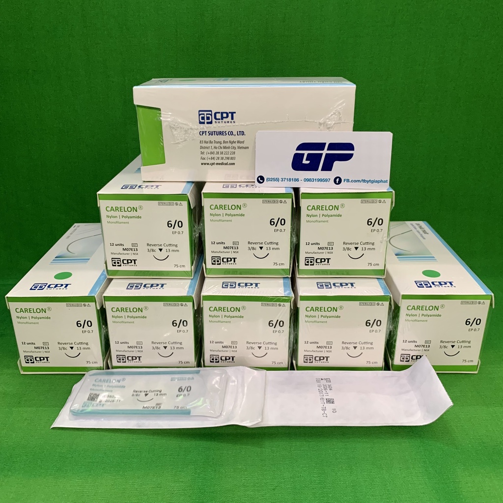 Chỉ phẩu thuật CPT CARELON Nylon số 2/0, 3/0, 4/0,5/0, 6/0, 7/0 Là loại chỉ phẫu thuật không tiêu Chỉ không tan tổng hợp đơn sợi, làm từ Polyamide 6-6.6, sợi tròn đều, dễ uốn, đàn hồi tốt Chỉ được phủ một lớp silicon Chỉ được nhuộm màu xanh dương (Blue) hoặc đen (Bla