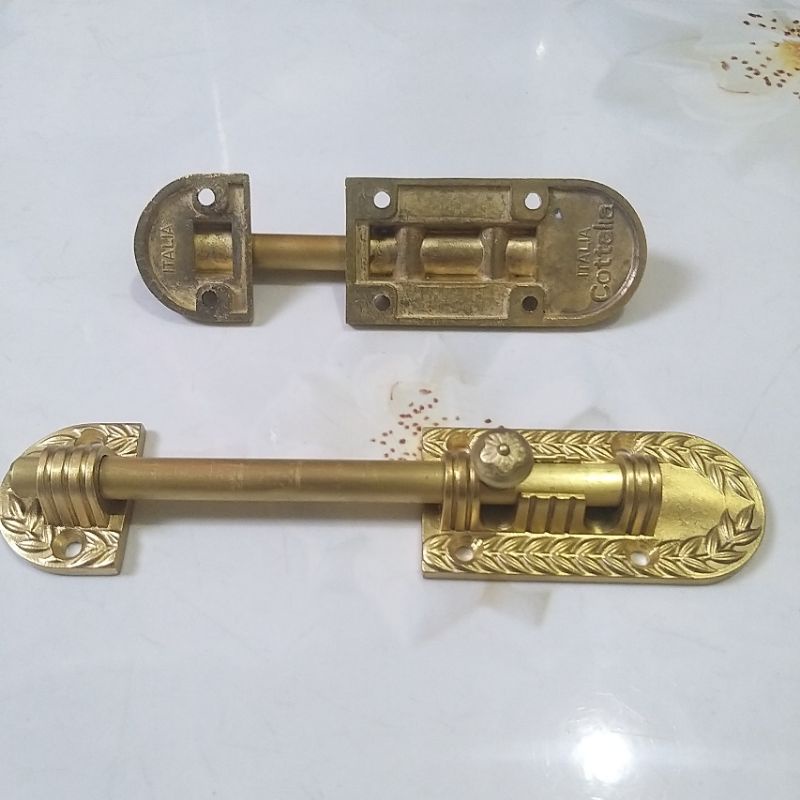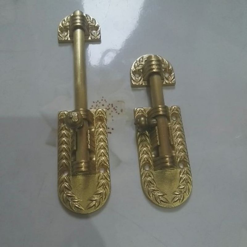 Chốt cửa gỗ bằng đồng thau có hoa văn bông lúa