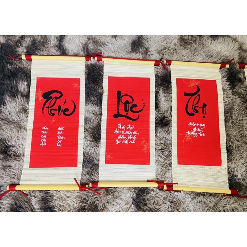 đầu năm mọi người thường xin chữ đề mong cầu những điều may mắn, tốt đẹp. nó đã trở thành một tập tục, thói quen của số đông người dân shop viết trên mành tre với các size mành 7* 14cm 10* 20cm 20* 40cm 30* 50cm 30* 70cm mành tre được bồi giấy xuyến, size to có nẹp 2