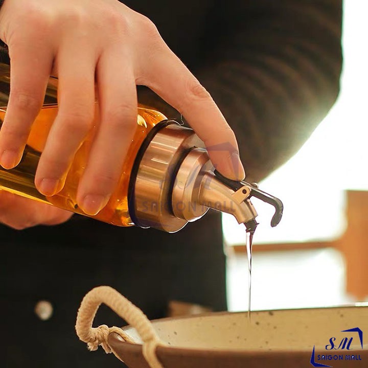 Chai thủy tinh cao cấp 500ml loại cao chia vạch đựng dầu ăn có vòi chiết rót tiện dụng.