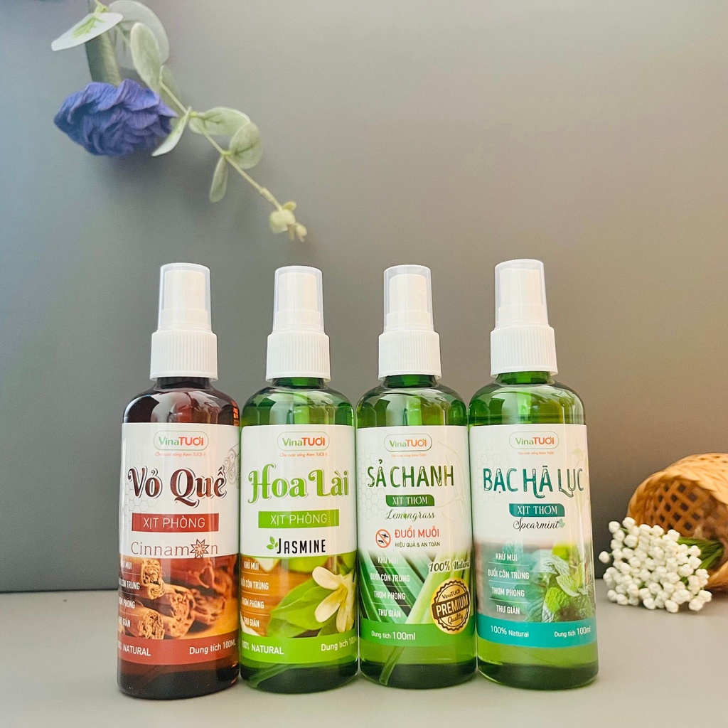 Chai Xịt Thơm Phòng Tinh Dầu Quế, Sả Chanh, Hoa Lài, Bạc Hà Lục 100ml VINA TƯƠI Bình Xịt Khử Mùi