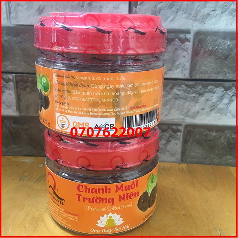 Chanh Muối Trường Niên Quy Nguyên Thầy Tuệ Hải Chùa Long Hương 220g --- 👉Chanh Muối Trường Niên (Chanh muối lâu năm) của Công ty Quy Nguyên với nguyên liệu là những quả chanh giấy vỏ mỏng, căng mọng, tươi ngon của miền Tây Nam Bộ được ướp với muối biển thiên nhiên đượ