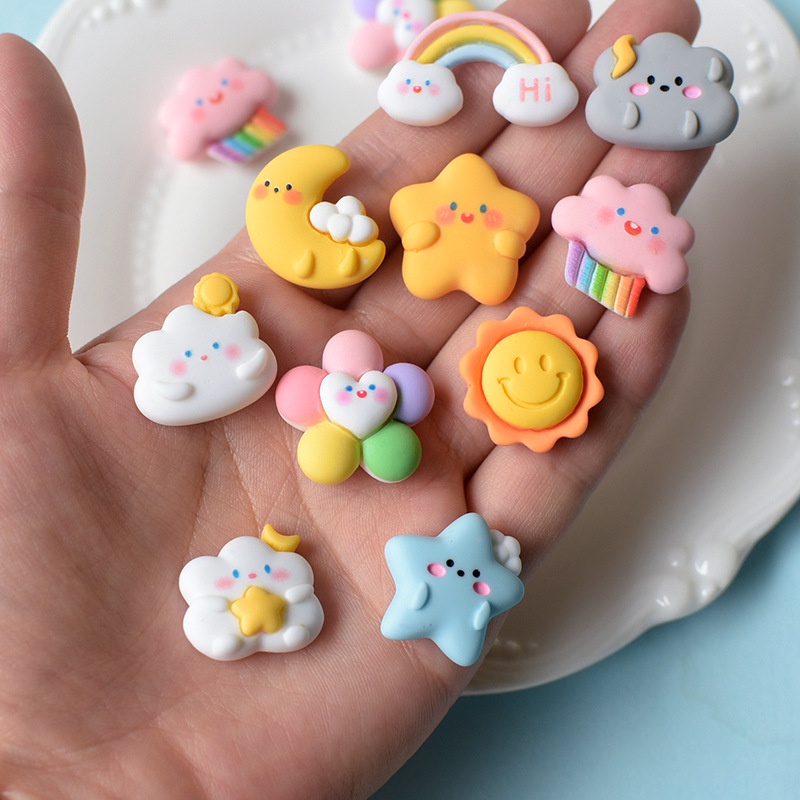 Charm Dễ Thương Mặt Trăng, Mặt Trời, Đám Mây Trang Trí Kẹp Tóc, Ốp Điện Thoại, DIY