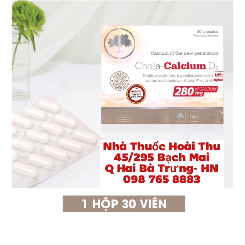 🌸🌸🌸 Nhà Thuốc : Hoài Thu 45/295 Bạch Mai , Q Hai Bà Trưng, HN 0987658883 Chela Calcium D3 💫 Hướng dẫn sử dụng : 1 hộp 30 viên bao nén - uống 1-3 viên/ ngày sau ăn sáng ( hoặc tham khảo thêm chỉ định của bác sĩ ) ✅ Sản phẩm được sản xuất bởi công ty Olimp Laborato
