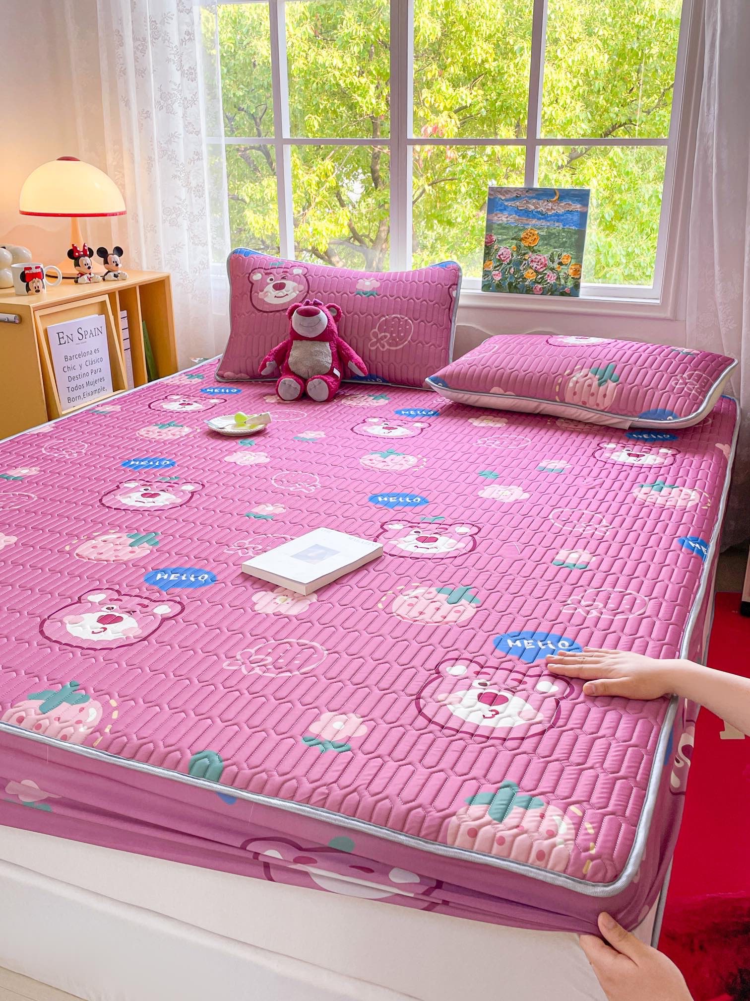Chiếu điều hòa TELCEL mủ cao su non loại bo chun mẫu GẤU HỒNG 1m6x2m