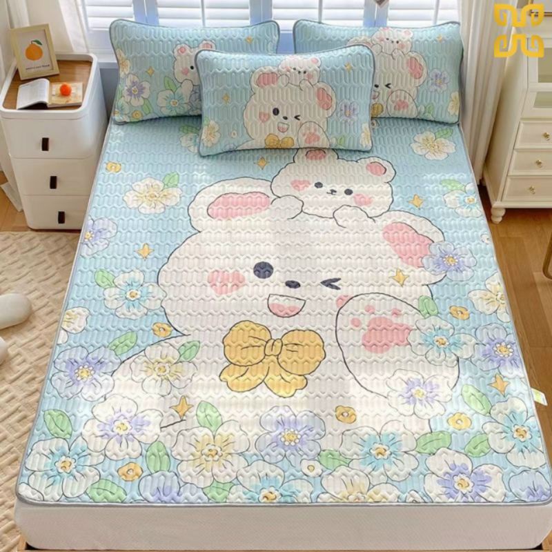 Chiếu điều hoà cao su non 5D tencel chiếu tấm trải mặt lụa mềm mát lõi cao su êm không mùi