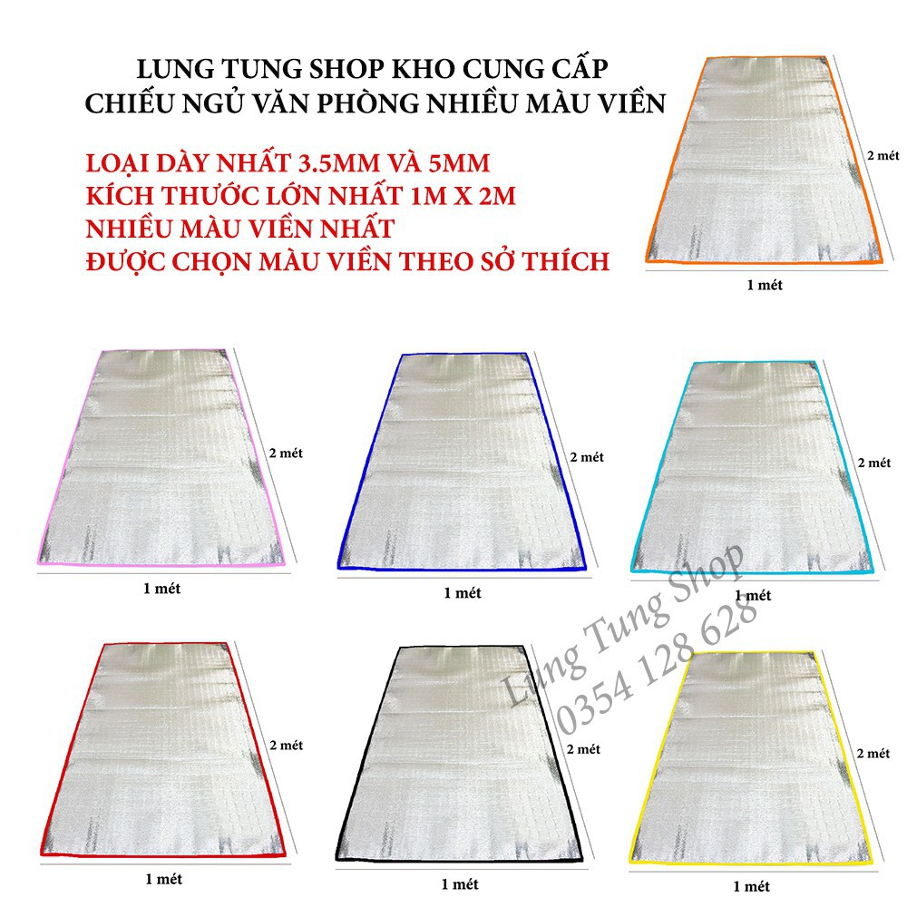 CHIẾU NGỦ TRƯA VĂN PHÒNG CÁ NHÂN - THẢM DU LỊCH CHỐNG THẤM - Kích thước : ngang 1m dài 2m ( kích thước lớn có thể sử dụng cho 1 hoặc 2 người ) - Loại dày 3.5mm ( loại dày nhất thị trường chiếu bạc ) - Thảm nhẹ có phủ 1 lớp bạc chống thấm cách nhiệt an toàn cho sức khỏ
