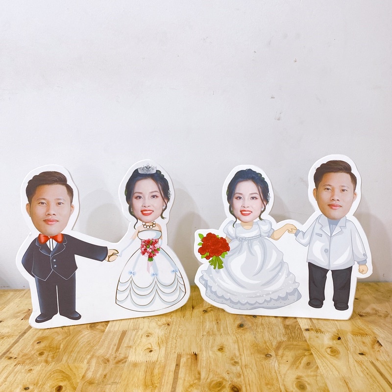 Chibi cô dâu chú rể trang trí đám cưới Kích thước 20-25-30cm Chất liệu : In pp dán form cứng Có tựa đứng để trên bàn trang trí Khách gửi hình cô dâu, chú rể rõ mặt qua zal0 0933792791 hoặc gmail Valleypartystore@gmail.com cho shop sau đó chọn mẫu là được ạ Shop sẽ gửi lại cho khách duyệt trước khi in Để hình ra được sắc nét, khách chọn hình có chất lượng cao và rõ mặt, tươi cười nhé 🥰🥰