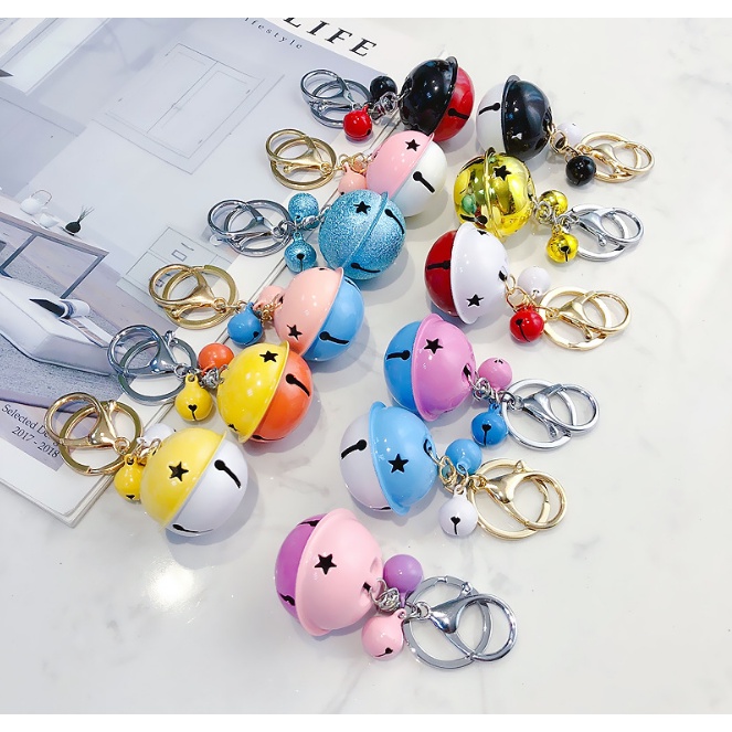Chuông móc khóa treo balo chìa khóa chuông lớn kèm chuông nhỏ NHIỀU MÀU SẮC LỰA CHỌN móc khóa