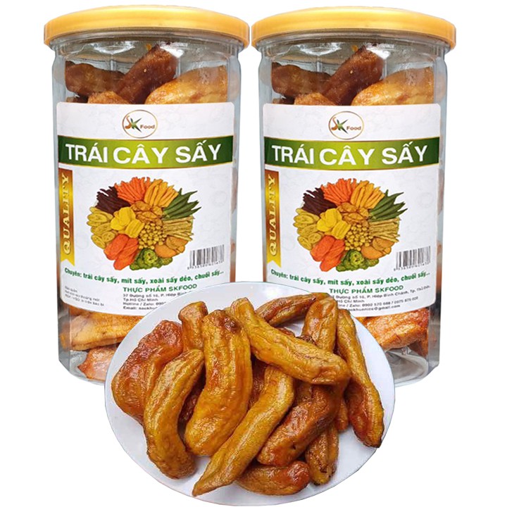 Xuất xứ : Việt Nam. Ngày sản xuất: In trên bao bì Trọng lượng: In trên bao bì Thương Hiệu SK FOOD Sản phẩm có giấy chứng nhận an toàn vệ sinh thực phẩm. Hướng dẫn sử dụng: Dùng trực tiếp, không cần chế biến. Hướng dẫn bảo quản: Nơi khô ráo thoáng mát, tránh ánh nắng mặt trời. Dùng không hết có thể đóng kín miệng nắp để dùng lần sau. Không sử dụng sản phẩm đã hết hạn. Chuối sấy dẻo Đà Lạt được sấy từ những trái chuối dẻo thơm ngon, dưới công nghệ sấy truyền thống lâu năm của người dân Đà Lạt Chuối dẻo ngọt, thơm ngon chất lượng cao Chuối khô sấy dẻo có tác dụng với sức khỏe: - Hỗ trợ tiêu hoá: Chuối khô sấy dẻo chứa hàm lượng chất xơ cao, nên là món ăn vặt tuyệt vời làm cơ thể đạt được trạng thái no, hỗ trợ tiêu hóa và giúp đường ruột khỏe mạnh. - Cân bằng đường huyết: Chuối khô sấy dẻo có vị ngọt tự nhiên do hàm lượng đường cao có sẵn trong chuối chín tự nhiên, giúp điều chỉnh lượng đường trong máu của cơ thể tăng trên mức trung bình. Tuy nhiên, chuối khô sấy dẻo được xếp vào loại thực phẩm có chỉ số đường huyết cao nên những người có bệnh tiểu đường chỉ nên dùng theo hướng dẫn của bác sĩ. - Giúp tăng cân hiệu quả: Do ở trạng thái cô đặc nên chuối khô sấy dẻo cũng cung cấp nhiều năng lượng hơn dạng tươi. Năng lượng trong trái cây khô chủ yếu được cung cấp từ hỗn hợp các đường tự nhiên. Nếu bạn đang rơi vào tình trạng muốn tăng cân mà không được, hãy thêm chuối khô sấy dẻo vào thực đơn hàng ngày. những trái chuối dẻo thơm ngon, dưới công nghệ sấy truyền thống lâu năm của người dân Đà Lạt