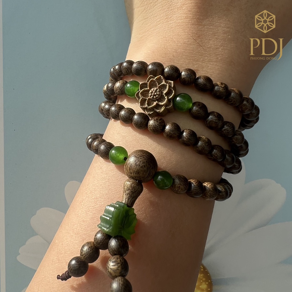 Chuỗi vòng tay trầm hương mix hoa sen bích - Tặng kèm hộp đựng trang sức - SP000572 - Trang sức PDJ
