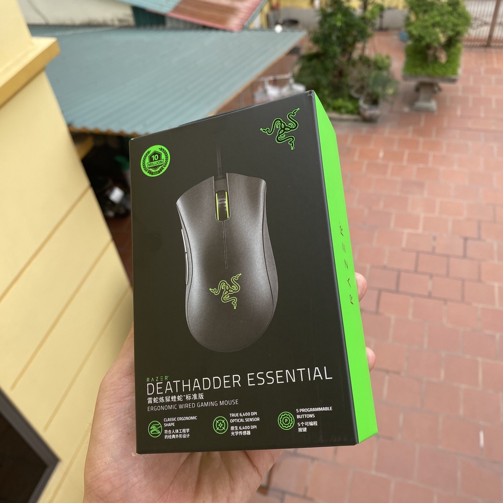 Ưu và nhược điểm trên dòng chuột Razer Deathadder Essential Deathadder Essential có trọng lượng chỉ 96g, thuộc hàng nhẹ nhất trên thị trường chuột chơi game có dây hiện tại, thế nên cảm giác cầm trên tay rất đặc biệt, có thể nói là con chuột chơi game nhẹ nhất mình từng xài. Ưu điểm trên dòng chuột Razer Deathadder Essential Rất thoải mái khi sử dụng: Thiết kế công thái học tiện dụng Hiệu suất tuyệt vời - Lấy nét + cảm biến và công tắc quang học Phần mềm cài đặt thân thiện với người dùng Cáp Speedflex nhẹ, tiện nghi và không rối dây khi sử dụng Nút ngón tay cái dễ dàng tin chỉnh và sử dụng. Nhược điểm trên Razer Deathadder Essential bạn cần biết Chỉ dành cho tay phải: Không có tùy chọn thuận tay trái như phiên bản trước đó. Led: Chỉ sở hữu Led Green đơn sắc. Chỉ có 2 vùng chiếu sáng trên thân chuột là Logo và con lăn. Tuy nhiên, nếu bạn đang cần một dòng chuột chơi game giá rẻ phù hợp để làm việc và giải trí với những tựa game yêu thích thì DeathAdder Essential sẽ không làm bạn thất vọng. Lưu ý khi mua hàng : - Tất cả đểu là hàng chính hãng, có thể cắm vào phần mềm Razer kiểm tra điều khiển như bình thường - Fullbox 100% : mới nguyên đai nguyên kiện, chưa mở hộp, chưa sử dụng - Likenew 6400DPI : Chuột không hộp, ngoại hình 97-99% - không bị double click - Lỗi 1 đổi 1 trong 1 tuần, và 12 tháng bảo hành