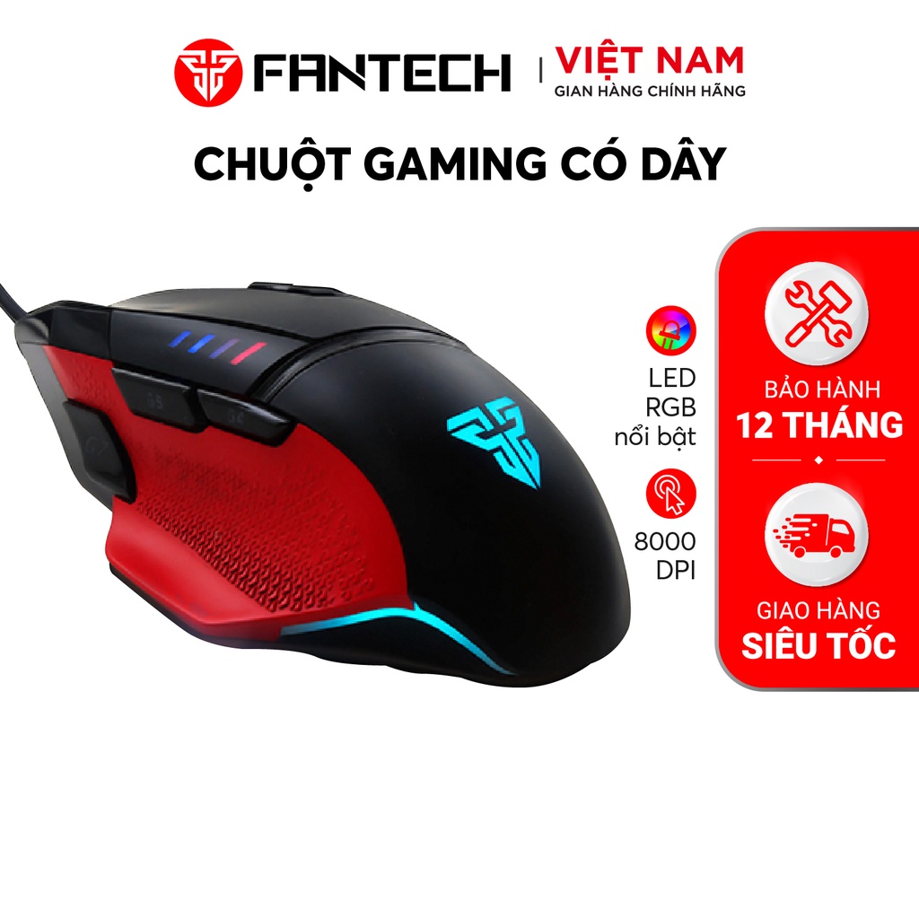 Chuột máy tính Gaming FANTECH X11 DAREDEVIL 8000DPI LED RGB 16,8 Triệu Màu 8 Phím Macro - Hãng phân phối chính hãng Bảo hành 12 tháng THỜI GIAN GIAO HÀNG SIÊU TỐC ĐỘ - Đơn giao hỏa tốc: Thời gian từ 1-3 giờ sau khi xác nhận đơn. - Đơn giao bình thường: Thời gian từ 1-3 ngày sau khi xác nhận đơn. Chuột gaming FANTECH X11là chuột chơi game công thái học, với phần thân lõm vào vừa với ngón tay của người sử dụng, tích hợp đèn LED RGB cực ngầu, phù hợp với thị hiếu của đa số game thủ 8 NÚT MARCO Thiết kế 8 nút Macro dễ dàng điều chỉnh, cho phép người chơi kiếm soát hoàn toàn trò chơi và nhu cầu đa phương tiện khác của mình. THIẾT KẾ ERGONOMIC & BỀN CHẮC Thiết kế Ergonomic (Công thái học) tay phải nhầm mang lại sự thoải mái cho người dùng, giảm bớt áp lực, cầm nắm ôm tay và tạo cảm giác thoải mái nhất cho game thủ, ngay cả khi phải thi đấu trong nhiều giờ liền. HỆ THỐNG LED RGB 16.8 TRIỆU MÀU TINH CHỈNH BẰNG PHẦN MỀM Tích hợp công nghệ RGB thông minh cho phép tùy chỉnh hoàn toàn ánh sáng mỗi phím với gần 16,8 triệu màu, gia tăng trải nghiệm chơi game. Thiết kế ít ánh sáng lọt xung quanh mũ phím, giúp ánh sáng đi qua nhiều hơn các chữ cái, khiến cho mỗi phím rực rỡ và dễ tìm hơn trong bóng tối. CHUYỂN ĐỔI DPI TỨC THÌ 200-8000 DPI Thực hiện chuyển động phù hợp trong mọi tình huống trò chơi. Chuyển đổi giữa 4 cài đặt DPI, từ nhắm mục tiêu chính xác đến từng điểm ảnh (200 DPI) tới điều khiển nhanh tựa ánh sáng (lên tới 8000 DPI). THÔNG TIN SẢN PHẨM - Độ phân giải quang học đến 8000 DPI - Độ bền: 20 triệu lần click - Đèn nền: LED RGB cò phần mềm tùy chỉnh - Chiều dài cáp: 1.8m bện nylon - Kích thước: 130mm x 75mm x 42mm - Số nút: 8 nút có chức năng MACRO - Cảm biến quang học - Giao diện kết nối: USB. CHÍNH SÁCH BẢO HÀNH - Bảo hành chất lượng sản phẩm 12 tháng. Với phương châm quyền lợi của khách hàng là quan trọng nhất, Fantech Việt Nam xây dựng chính sách đổi trả dành cho khách hàng như sau: - Trong vòng 15 ngày đầu sau khi mua hàng. - Tất cả các sản phẩm tuân theo điều khoản bảo hành tại thời điểm xuất hóa đơn cho khách hàng. ĐỊA CHỈ TRUNG TÂM BẢO HÀNH: - HCM: Số 19/14 Hồ Văn Huê, Phường 9, Phú Nhuận, HCM Hotline: 0912 334 833 Thời gian làm việc: 8h - 17h30 (Thứ 2 -Thứ 7). --------------------------------------------------- THÔNG TIN THƯƠNG HIỆU Fantech là thương hiệu thiết bị phát triển nhanh nhất thế giới dành cho game thủ. Fantech chuyên tâm vào chế tạo và phát triển các sản phẩm hướng tới game thủ PC như laptop chơi game, phụ kiện máy tính, thiết bị ngoại vi máy tính chơi game khác nhau, thiết bị đeo và phụ kiện. - Thành lập: Năm 2009 - Trụ sở: Indonesia. ZACOM VIỆT NAM - Phân phối chính thức sản phẩm �Fantech tại Việt Nam - Tên đầy đủ :Công Ty TNHH ZACOM VIỆT NAM - Địa chỉ: 19/14 Hồ Văn Huê, Phường 09, Quận Phú Nhuận, Thành phố Hồ Chí Minh, Việt Nam. - Điện thoại: 0912 334 833