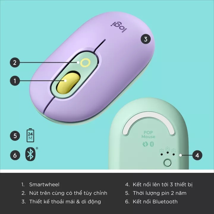 Chuột Không Dây Bluetooth Logi POP MOUSE - Giảm Ồn, Nút Emoji Tùy Chỉnh