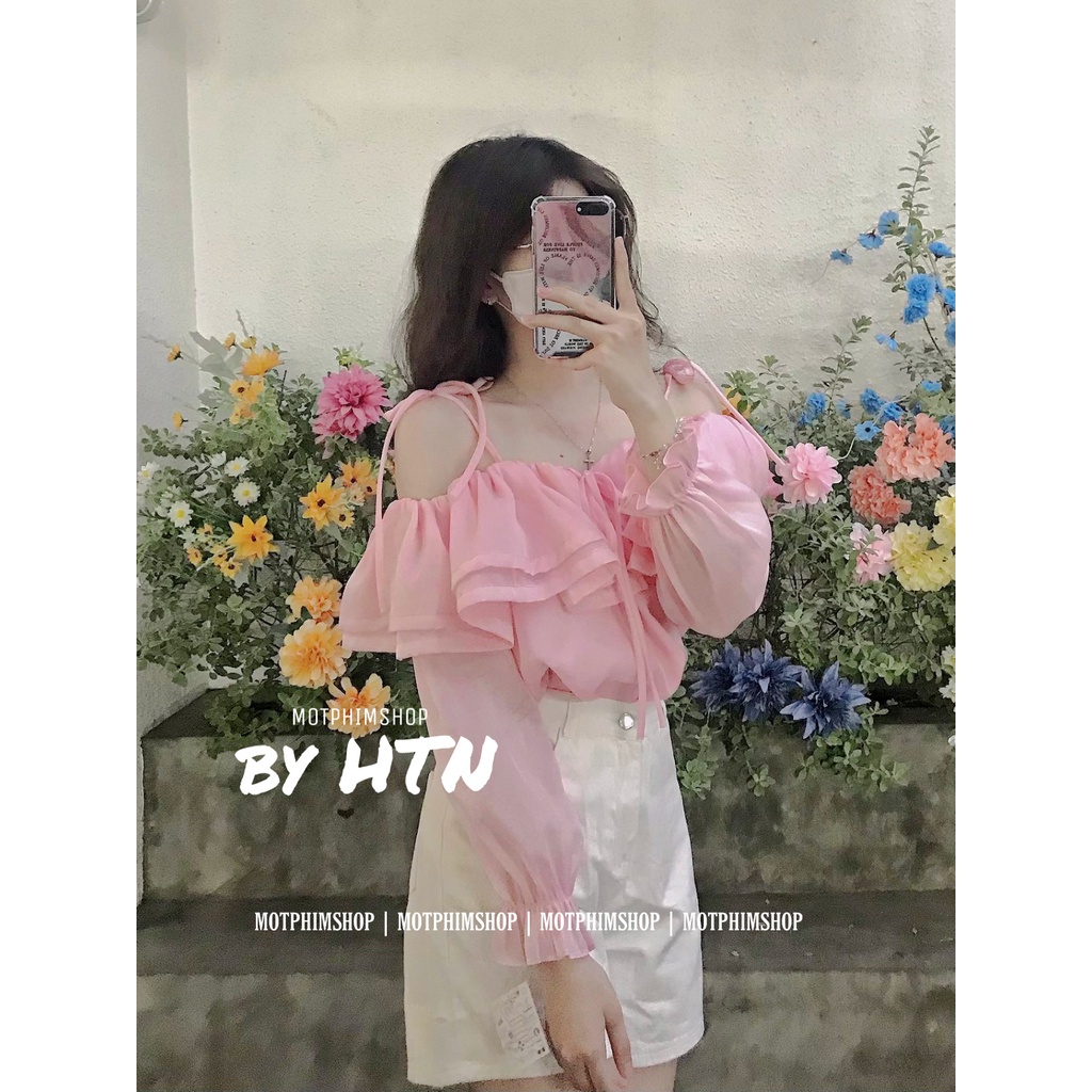 CLOUDY TOP - Áo tơ trễ vai bồng bềnh
