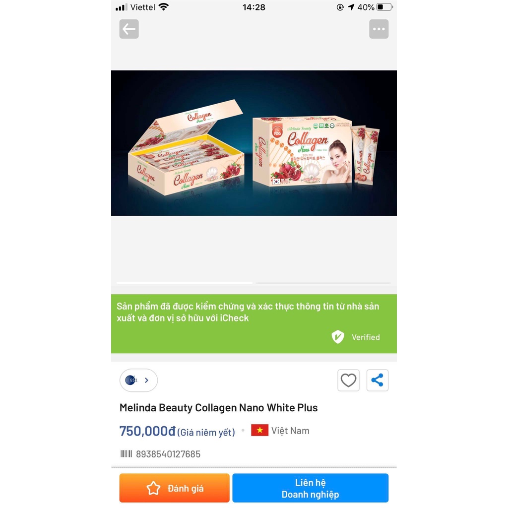 Bột uống trắng da Collagen Nano lựu đỏ giúp giảm nám, tàn nhang, tăng cường hệ miễn dịch cho cơ thể Thành Phần: Collagen Nano...............500mg Vitamin C.......................500mcg Vitamin E.......................1000mcg Vitamin B3.....................0,5mg Hỗ hợ