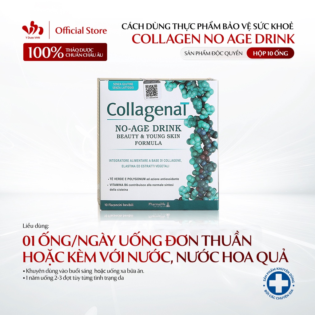 Collagen Uống Dạng Ống Collagen No Age Drink PHARMALIFE Hỗ Trợ Ngăn Ngừa Quá Trình Lão Hóa Hộp 10 Ống