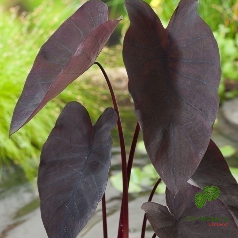 ĐẶC ĐIỂM & ỨNG DỤNG - ĐẶC ĐIỂM: Colocasia Esculenta Black Magic là dòng môn nước có sắc đen ánh xám,lá tim kích thước lớn khi trưởng thành có thể lên tới 1m chiều dài.Thân xanh pha sắc đỏ nhạt.Cây ưa nước và ánh nắng. - ỨNG DỤNG: Vì cây có màu sắc đẹp và tính thích n