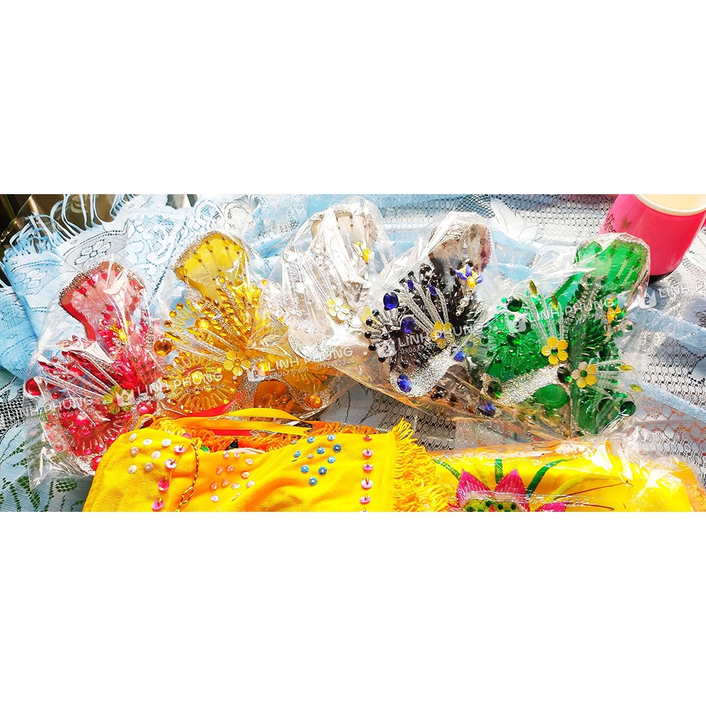 Bộ áo mão 5 bà Ngũ Hành Nương Nương Bộ sản phẩm bao gồm: 5 áo choàng, 5 mão (KHÔNG BÁN TƯỢNG KÈM THEO) Mẫu: BTM, BNS (3 tất, 4 tất) Chất liệu: áo nhung đính cườm rồng phụng, mão khung lưới đi hột đá Kích thước: Size 3 tất: áo dài 30cm, vòng mão 18cm Size 4 tất: áo dài 40cm, vòng mão 22cm ** Phía sau mão có miếng dán để nới & thu vô, có hình hướng dẫn ở trên** SHOP HỖ TRỢ ĐỔI SIZE CHO KHÁCH trong 2 ngày tính từ khi nhận hàng: phí ship đổi hàng HCM 40K, TỈNH - 60K. Cam kết hàng CHẤT LƯỢNG, UY TÍN! Sản phẩm bị lỗi, hỏng, gẫy quý khách vui lòng quay clip. SHOP ĐỔI MỚI 100% cho mình. ,----------------------------- VÌ LÀ HÀNG THỦ CÔNG - ÁO MỚI 100% Nên sản phẩm tùy loại có vết màu của phấn may (giặt tay ra và tự bay màu được) Mong quý khách thông cảm!