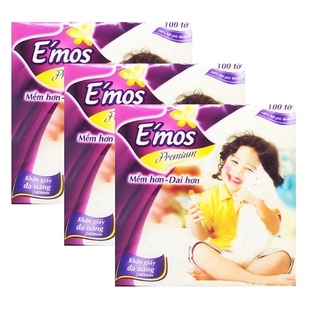 Giấy vệ sinh E'mos 240x240mm, thiết kế hình vuông, được sản xuất với công nghệ độc đáo, lựa chọn và kết nối theo cấu trúc α những sợi giấy thuần khiết nhất từ thiên nhiên, không chứa các hóa chất độc hại, không gây kích ứng da, đảm bảo an toàn tuyệt đối cho người dùng