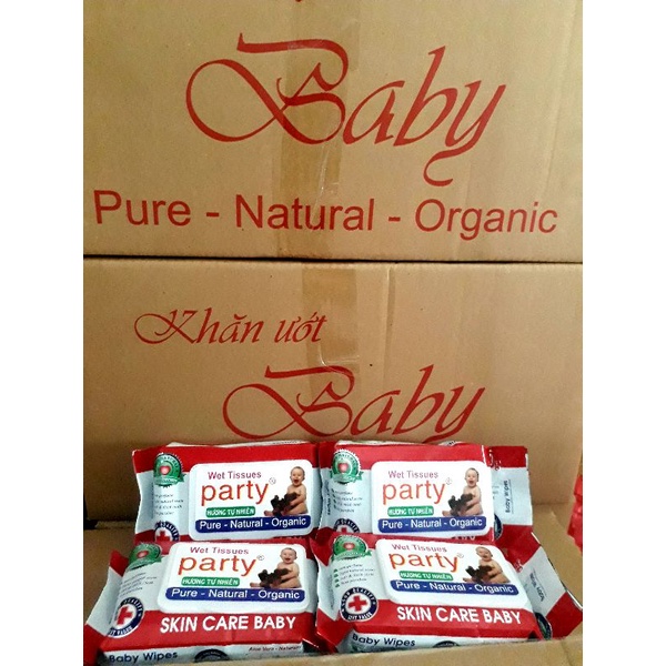 Sản phẩm khăn giấy ướt được sản xuất từ nguyên liệu chọn lọc đặc biệt, phù hợp cho làn da nhờn và nhạy cạm Với hương liệu được chiết xuất 100% từ các hương liệu tự nhiên như trà xanh,Aloe Vera,.. Giúp cho làm da em bé tươi mát và mềm mại. Dùng cho mọi người cả người lớn và em bé. Sản phẩm không chứa cồn, chất sút và không gây kích ứng da. Sản phẩm luôn đặt chất lượng lên hàng đầu. THUỘC TÍNH SẢN PHẨM Xuất xứ: Vietnam. CHI TIẾT SẢN PHẨM Khăn Giấy Ướt Cao Cấp Party 80g Xuất xứ: Việt Nam Sản phẩm khăn giấy ướt cao cấp Party 80g được sản xuất từ nguyên liệu chọn lọc đặc biệt, phù hợp cho làn da nhờn và nhạy cảm Với hương liệu được chiết xuất 100% từ các hương liệu tự nhiên như trà xanh,Aloe Vera,.. Giúp cho làm da em bé tươi mát và mềm mại. Dùng cho mọi người cả người lớn và em bé. Sản phẩm không chứa cồn, chất sút và không gây kích ứng da. Sản phẩm luôn đặt chất lượng lên hàng đầu. Chất liệu: sợi cotton không dệt - Sản phẩm giúp dưỡng da, không làm khô da, nhớt da với tính năng giữ ẩm ưu việt. - Giấy ướt sử dụng dễ dàng, thuận tiện trong việc vệ sinh khi thay tã, lau người khi bé đi chơi xa. - Sản phẩm phù hợp với cả gia đình, thân thiện với môi trường. - Không chứa cồn, không mùi, không gây nhờn rít da bé. - Sản xuất theo công nghệ tự động quy trình kép kín an toàn cho người sử dụng. - Thiết kế bao bì với hình ảnh ngộ nghĩnh, có nắp đậy bằng nhựa - Giấy ướt sử dụng 1 lần, tiện lợi cho mẹ chăm sóc bé, gia đình... - Xuất xứ: Việt Nam Cách sử dụng - Mở nắp hộp, gỡ miếng dán decal phía trong, tút từng chiếc khăn để sử dụng. Sau khi dùng xong, đóng nắp hộp lại (dán miếng decal) để giữ ẩm và kháng khuẩn. - Chú ý: Sản phẩm này không tan trong nước, xin đừng vứt vào toilet . Một nghiên cứu đã chỉ ra rằng cách xử lý khoa học và tốt nhất sau khi bé vệ sinh là dùng khăn giấy ướt lau sạch vùng bẩn từ trước ra sau. Với cách rửa truyền thống: dùng khăn giấy lau, rửa lại bằng nước ấm và lau khô bằng khăn xô, làn da vốn mỏng manh, nhạy cảm của bé sẽ trải qua những cảm giác khó chịu như khô ráp do khăn giấy, vùng bẩn bị loang rộng do nước, và còn có thể bị hăm do những sợi bông từ khăn giấy lưu lại trên da...
