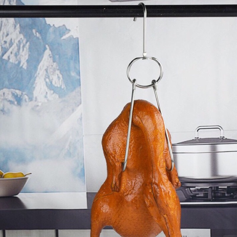 - Tên sản phẩm: MÓC TREO VỊT GÀ - Chất liệu: Làm bằng inox - Thông số kỹ thuật: dày 3,5mm dài 30cm - Công dụng: treo vịt nướng, ngỗng quay, gà nướng, sườn nướng, chân cừu, thịt xông khói. Nó có một loạt các ứng dụng và là một công cụ không thể thiếu cho nhà bếp c