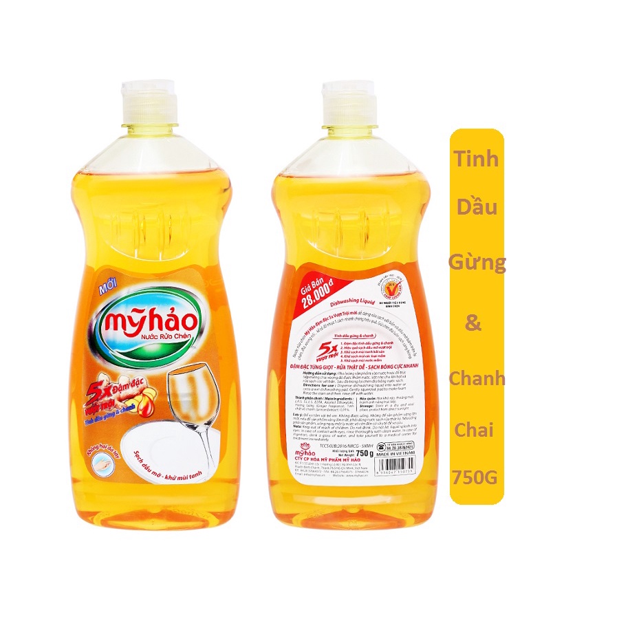 Combo 2 Chai Nước Rửa chén 5X đậm đặc Mỹ Hảo 750g/chai Gừng & Tinh dầu Vỏ Chanh