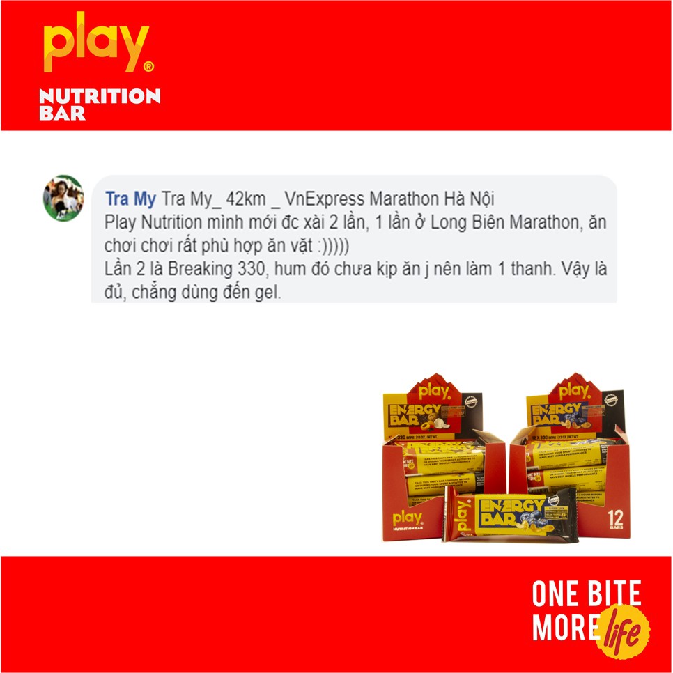 Thanh năng lượng Play Nutrition cung cấp dưỡng chất và nguồn năng lượng một cách lành mạnh, tiện lợi. - Play Energy bar 100% vegan, người ăn mặn hay thuần chay đều dùng được. - Mỗi thanh ngũ cốc sẽ cung cấp khoảng 148kcal giúp bạn có năng lượng để trong làm việc, tập