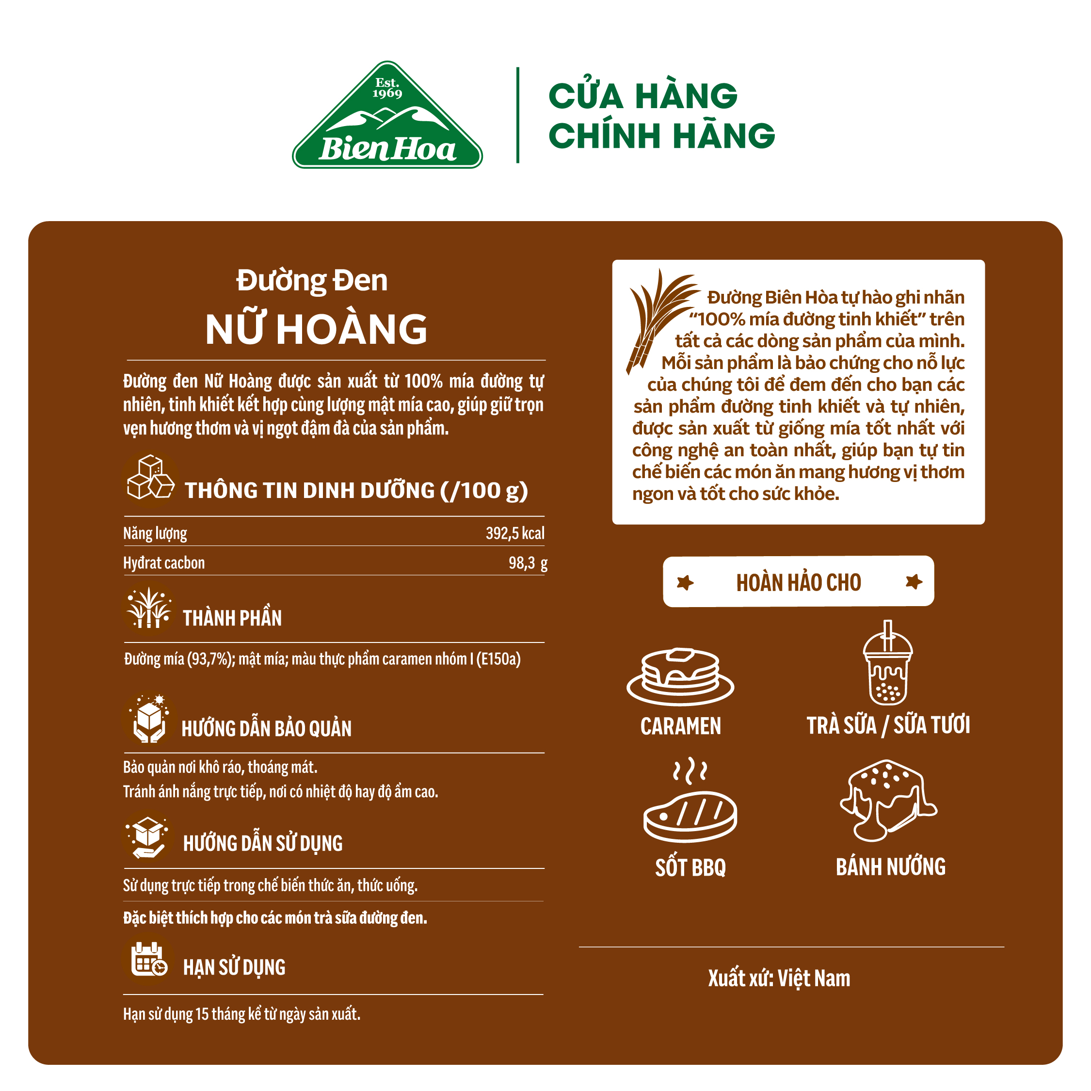 *Lưu ý : Sản phẩm Đường đen Nữ hoàng do được bổ sung thêm 200% mật mía nên sản phẩm sẽ không khô như các sản phẩm đường khác, chứ không phải đường bị chảy hay hư hỏng đâu khách nhé!
