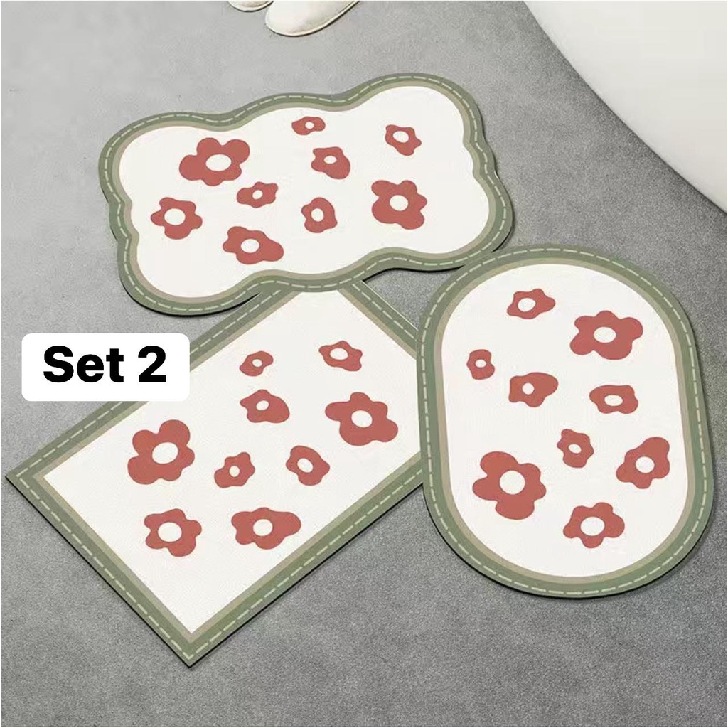 Tìm đồ decor lại nhà mà thấy set Thảm phong cách Retro xinh xắn quá Set 3 thảm thấm nước cực tốt chống trượt sale shock cute dã man 😲 Mng mua 1set, để cửa nhà 1c, dưới kệ bếp 1c, cửa nhà tắm 1c là siu hợp lí ạKích thước 40x60 (kích thước to đó ạ. Có loại nhỏ rẻ hơn e ko gom) Em gom 6màu đánh số