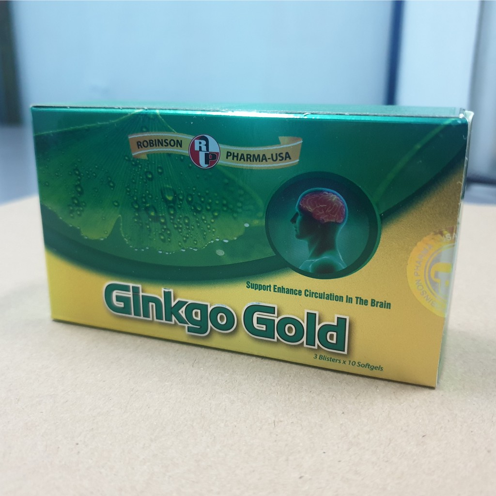 COMBO 4 hộp GINGKO GOLD_Medibeauty H/30 viên. <<- Khi mua 4 hộp sản phẩm Gingko Gold hộp 30 viên bạn sẽ được tặng 1 áo mưa dù cao cấp ->> ► Công dụng chính : - Tăng lưu lượng máu vào não,giúp tuần hoàn máu não,phục hồi trí nhớ,giảm suy nhược thần kinh, hỗ trợ phòng bệnh Alzheimer,Parkinson và các bệnh liên quan đến sự xáo trộn thần kinh. - Nuôi dưỡng các tế bào thần kinh,hỗ trợ tuần hoàn và tăng lưu lượng máu đến các bộ phận trên cơ thể như: não bộ,mắt,tai,tim,tay chân… - Giảm căng thẳng stress, tăng cường sự tập trung,cân bằng hệ thống thần kinh,tốt cho hoạt động của tim và gan. -Hỗ trợ tăng cường tuần hoàn não và giảm nguy cơ lão hóa, buồn ngủ, mệt mỏi và căng thẳng. Hỗ trợ cải thiện di chứng sau tai biến mạch máu não. ►Thành phần: cho 1 viên: Ginkgo biloba extract (Cao bạch quả).......120 mg Magnesium oxide......................................40 mg Acid glutamic……......................................25 mg Cafein…………...........................................10 mg Thiamin mononitrat (Vitamin B1).................3 mg Pyridoxin (Vitamin B6)………........................3 mg Acid folic…………...................…….......... 400 mcg Phụ liệu: dầu ăn, sáp ong, lecithin, gelatin, sorbitol, glycerin, parafin lỏng, hương vani vừa đủ 1 viên. ►Đối tượng sử dụng: - Người bị suy nhược thần kinh, đau đầu, hoa mắt, chóng mặt, ù tai do thiểu năng tuần hoàn não. - Học sinh, sinh viên bị căng thẳng mệt mỏi trong thời kì ôn thi. - Người làm việc trí óc cần tập trung. ►Cách dùng: - Uống sau khi ăn - Uống 1-2 viên/ ngày - Khi muốn sử dụng nhiều hơn cần tham khảo ý kiến của bác sỹ. ►Lưu ý: - Thực phẩm này không phải là thuốc và không có tác dụng thay thế thuốc chữa bệnh. -Người mắc hội chứng máu chậm đông, đang chảy máu, phụ nữ mang thai cần tham khảo ý kiến thầy thuốc trước khi sử dụng. #Gingkogold #bonao #hoathuyetduongnao #tuanhoanmaunao #giamstress #caithientrinho #roiloantiendinh #luuthongmau #thucphamchucnang #robinsonpharmausa #medibeauty http://www.Medibeauty.vn