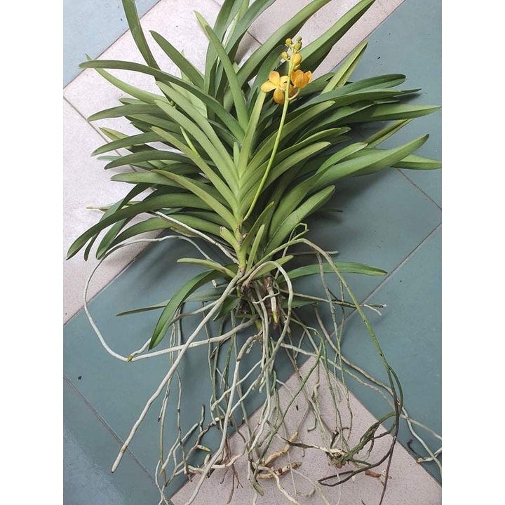 Combo bao gồm 5 cây lan Mokara từ 3-4 màu thuộc họ lan phổ biến ở Việt Nam. Mokara là một giống lan siêng bông nên thường được trồng để cắt cành hoặc để làm cảnh. - Tên hoa: Lan Mokara (họ Lan Orchidaceae) - Loại lan: Đơn thân - Tầng lá: Nhiều tầng (cao trên 20-30 cm) - Màu hoa: 2 đỏ, 3 cây màu ngẫu nhiên vàng chanh, vàng đồng, vàng Kitty, tím, hồng hoặc trắng Cây con đảm bảo có rễ và khỏe. Cây chưa bao gồm chậu Khuyên dùng: nên mua kèm combo 3 chai phân Grow More và N3M. Sản phẩm có bán tại Cửa Hàng Jack Mokara là loài lan đơn thân, thân hình trụ dài tiếp tục mọc cao lên mãi, không có giả hành, lá dài hình lòng máng hay hình trụ mọc cách hai bên thân. Vòi hoa mọc từ nách lá giữa thân, phát hoa dài mang nhiều hoa thường không phân nhánh. Hoa cỡ trung bình đến lớn, cánh đài của hoa rất lớn. Hoa có nhiều màu sắc phong phú từ trắng, tím, hồng đỏ, cam đến vàng nâu, xanh. Lan Mokara hiện rất đa dạng về màu sắc như đỏ, vàng đồng, vàng chanh, vàng kitty, tím, trắng,… Kỹ thuật trồng lan Mokara chăm ra hoa 1. Tìm hiểu về điều kiện sinh trưởng tốt cho lan Mokara Do Mokara là giống lan phổ biến tại Đông Nam Á nên điều kiện khí hậu ở Việt Nam vô cùng thích hợp để trồng giống lan này. Nhiệt độ: cây lan Mokara thích hợp sống trong môi trường nhiệt độ có biên độ giao động khá rộng từ 25 – 35 độ hoặc cao hơn cây vẫn có thể thích nghi. Tuy nhiên, để cây lan Mokara siêng ra hoa thì ta cần đảm bảo cây nằm trong môi trường nhiệt độ này. Ánh sáng: Lan Mokara thuộc nhóm phong lan chịu nắng tốt nên thường các tỉnh phía Nam được trồng nhiều để cắt cành. Bạn nên dùng lưới có độ phủ ánh sáng khoảng 70% là tốt nhất. Độ ẩm: cây khá ưa ẩm nên các nhà vườn thường dùng vỏ đậu phộng bỏ dưới gốc cây để giữ ẩm cho cây được tốt. Độ ẩm phù hợp giao động từ 65 – 75%. 2. Chuẩn bị giá thể cho Mokara Do là loại cây đơn thân, dáng thẳng thân hình trụ và mọc lên cao nên cây phù hợp trồng trong chậu có kèm thanh gỗ hoặc ống nhựa cao từ 1m trở lên do cây sinh trưởng có thể cao đến hơn 2m. Cây phù hợp với các loại giá thể như vỏ trấu, vỏ đậu phộng, hay cả than củi. 3. Trồng lan Mokara vào chậu Trước tiên, bạn cho than củi vào đáy chậu rồi rắc vỏ đậu phộng lên. Sau đó cắm trụ gỗ hoặc ống nhựa ở giữa chậu để cố định chắc chắn cây. Sau đó bạn trồng lan Mokara vào chậu rồi dùng dây buộc với trụ đỡ để cố định cây. Bạn lưu ý không được rể lan nằm sâu trong trong giá thể mà nên trồng lên cao 1 khoảng vừa đủ để rễ lan có thể mọc dài xuống và cũng như tránh cây bị úng. Cho than củi vào đáy chậu lan Mokara rồi rắc vỏ đậu phộng lên 4. Tưới nước và bón phân cho lan Mokara Bạn cần tưới nước cho lan Mokara đều đặn 2 lần 1 ngày Tưới nước Bạn cần tưới nước cho lan Mokara đều đặn 2 lần 1 ngày và khi tưới cần tưới ướt cây từ ngọn tới rễ. Không tưới quá nhiều tránh độ ẩm tăng cao gây thúi cây. Khi trời mưa, cây lan ướt sũng thì bạn nên giãn cách 1-2 ngày sau mới tưới lại, tránh cây bị thừa nước. Phân bón: Sau đây là trích dẫn chia sẻ của anh Minh chủ vườn lan Huệ Minh về các giai đoạn bón phân ch