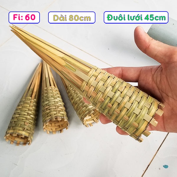 THÔNG SỐ KỸ THUẬT MẪU ỐNG TRÚM LƯƠN FI-60 CÓ TÚI THỞ PHÍA SAU: Chiều dài phần ống nhựa: 75-80cm, đường kính 60mm, dày 3mm Chiều dài phần đuôi lưới: 45cm Kiểu ống trúm: 1 hom (hom tre) Với mẫu trúm bắt lươn này có tổng chiều dài khoảng tầm 1.2m. Điều này giúp anh em mình hoàn toàn yên tâm khi đi đặt trúm mà không phải lo lươn vào bị ngộp khi ngập nước nha. Phần hom trúm ở phần đầu được sử dụng mẫu hom tre (loại tốt). Với đặt điểm nan hom có độ dẻo cao, giúp lươn dễ dàng vào trong trúm, hom đan kín khít. Một khi vào là không thể thoát ra được. Khi sử dụng mẫu trúm bắt lươn này, anh em nếu thấy phần đuôi lưới còn ngắn thì anh em hoàn toàn có thể độ thêm cho nó dài ra nha. Nhưng mà kinh nghiệm bản thân mình nhận thấy 45cm phần đuôi lưới đã là quá đủ rồi, dài thêm cũng không cần thiết lắm. BÀI MỒI ĐẶT TRÚM BẮT LƯƠN ĐỂ CHO ANH EM THAM KHẢO THÊM NHA: Bài mồi thứ 1 (luôn nên ưu tiên): là dùng trùn (giun) băm nhỏ ra, sau đó trộn với đất bùn hoặc đất sét, vo thành từng viên, cho vào trúm mà mang đi đặt nha anh em. Bài mồi thứ 2: cá vụn, cá phi mang nấu lên, thay vì 10 phần là chín, anh em nấu tới 7-8 phần cho còn mùi tanh, rồi cũng trộn bùn hoặc đất rồi vo viên như cách thứ 1. Bài mồi đặt trúm bắt lươn thứ 3: có thể dùng cua, ốc bu vàng trộn thêm ít tỏi, ớt, ngũ vị hương rồi lần lượt cho vào ống mang đi đặt nha anh em. Cảm ơn anh em đã theo dõi, kính chúc anh em luôn được nhiều sức khỏe và thành công ạ.