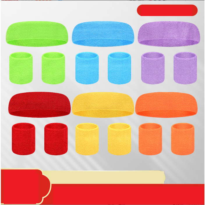 Combo Bộ 1 chiếc băng trán và 2 chiếc đeo cổ tay Băng đô vải dệt kim thấm hút mồ hôi thể thao