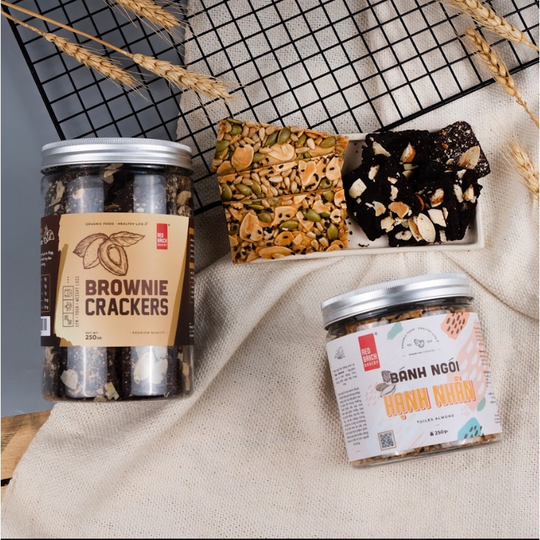 Combo Brownie Crackers 250Gr Và Bánh Ngói Hạnh Nhân 250gr Thương Hiệu Gạch Đỏ Dành Cho Ăn Eatlean