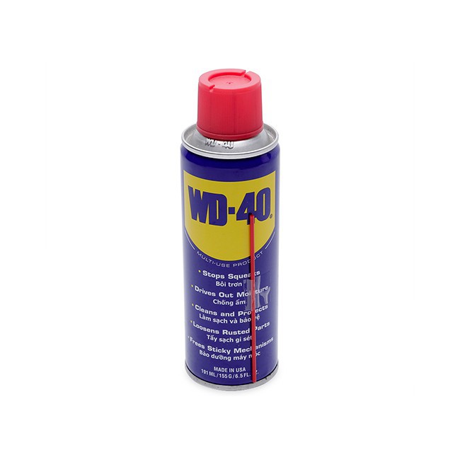 Giới thiệu sản phẩm Combo chai xịt chống rỉ sét, bôi trơn WD-40 và bàn chải vệ sinh sên 3D chuyên nghiệp DẦU CHỒNG GỈ ĐA NĂNG WD-40 - Dầu chống gỉ đa năng WD-40 được sáng chế bởi Công ty Rocket, Sandiego, CA, Hoa Kì vào năm 1953 theo đơn đặt hàng của NASA và Bộ Quốc Phòng Hoa Kì. Sau hơn 60 năm phát triển, dầu đa năng WD-40 đã trở thành một trong những thương hiệu bảo vệ kim loại nổi tiếng nhất thế giới và là lựa chọn thông minh số một tại Hoa Kì. - WD-40 là loại hỗn hợp đa năng dễ sử dụng, có thể len lỏi, xuyên thấm qua những khe hở nhỏ nhất, WD-40 được áp dụng rộng rãi trong nhiều lĩnh vực công nghiệp, hàng không vũ trụ, vận tải hàng hải, quân sự, sửa chữa và bảo trì cơ khí, điện – điện tử… WD-40 có tác dụng xuyên thấm, phá vỡ cấu trúc gỉ sét, khôi phục truyền động, bảo vệ kim loại, đẩy nước ra khỏi bền mặt và bôi trơn để đảm bảo cho máy móc, dụng cụ và công cụ hoạt động hiệu quả, giúp gia tăng tuổi thọ của dụng cụ và thiết bị. Dầu chống gỉ WD-40 có 5 tính năng nổi bật: 1/ Tính năng đẩy nước (Water Dispersant): Khử ẩm, nhanh chóng làm khô ráo các mạch điện, ngăn ngừa chập mạch. Dùng cho, công tắc, mạch điều khiển, máy móc, bộ đề… 2/ Tính năng làm sạch (Cleaning Agent): Làm sạch và loại bỏ dầu mỡ, bụi bẩn. Hòa tan các chất kết dính, giúp dễ dàng tháo lắp các vật liệu bị kẹt như bulong, ốc vít, sên, xích líp, bạc đạn, quạt, các công cụ điện, lưỡi cưa, đồ chơi golf, máy tập thể dục trong nhà... và hàng ngàn ứng dụng. 3/Tính năng thẩm thấu phá gỉ sét (Penetrate): WD-40 thẩm thấu mạnh xuyên qua các khe hở nhỏ nhất, phá vỡ cấu trúc gỉ sét và các tác nhân gây kẹt, làm cho các bộ phận bị kẹt, trở nên nhẹ nhàng. 4/ Tính năng bảo vệ chống gỉ (Rust Inhibitor): Phủ 1 lớp ảo vệ bề mặt kim lọai khỏi gỉ sét. Áp dụng cho tất cả các kim loại, nhôm, công cụ, dụng cụ làm vườn, lưới sắt, khuôn mẫu, anten, điện cực… 5/ Tính năng bôi trơn (Lubricant): Bôi trơn và khôi phục sự truyền động thông suốt, triệt tiêu các tiếng ồn phát ra do ma sát. Áp dụng cho các bánh đà, trục cán, bánh răng, bạc đạn, xích líp, ổ khóa, dây kéo, bánh xe, bản lề cửa… Dung tích: 191ml/155g