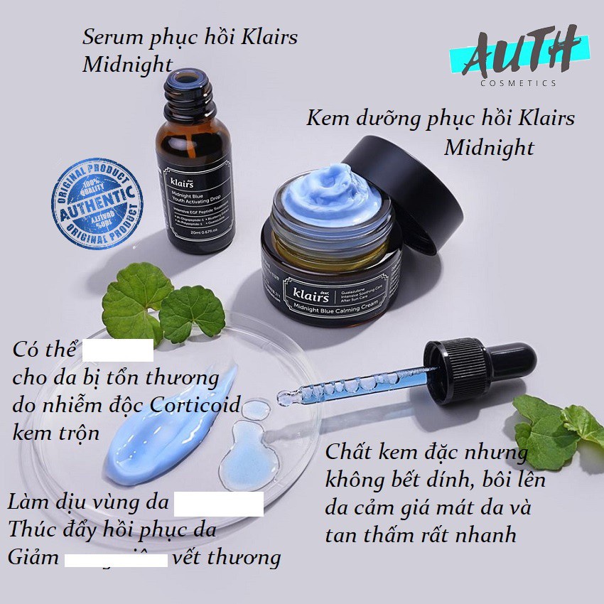 Combo Dưỡng Phục Hồi Tổn Thương Da Serum - Kem dưỡng Klairs Midnight Blue 30g