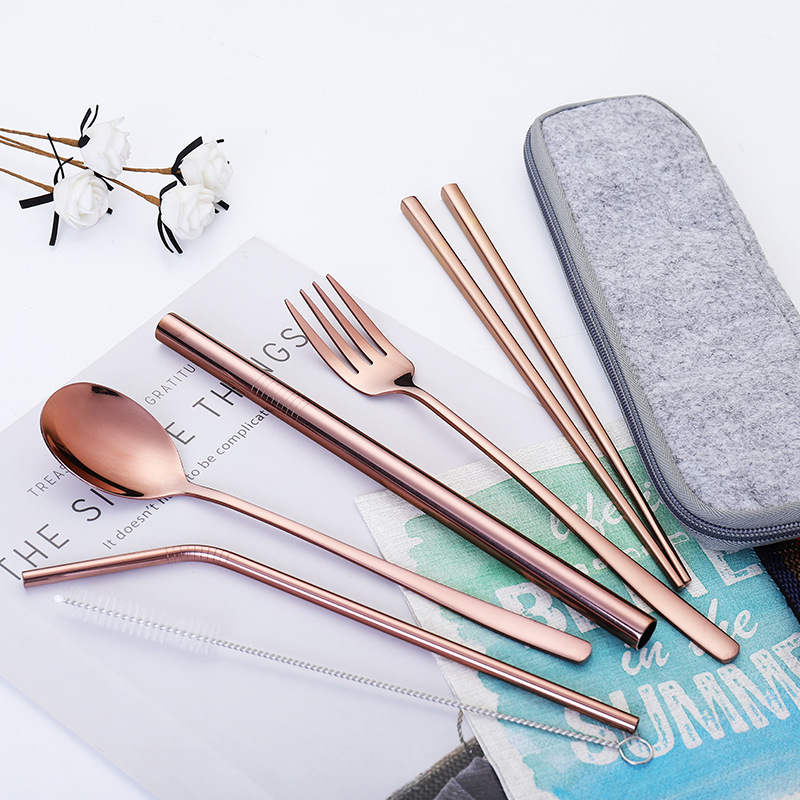 Combo Muỗng Đũa Nĩa Kèm Ống Hút Inox304 và Túi Đựng