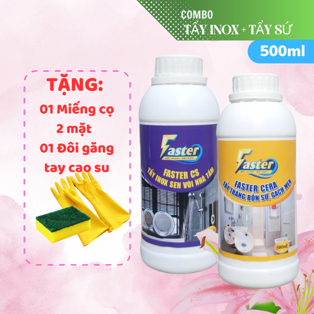 Combo Nước Tẩy sen vòi inox & Tẩy Trắng Bồn sứ, gạch men Faster 500ml