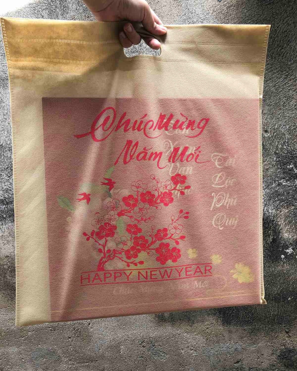 Bạn cần túi làm quà tặng? Bạn cần túi đựng lịch? Túi đựng đồ trang trí? Túi nên dùng được nhiều lần, giá tốt và bảo vệ môi trường ^^Còn gì tiện hơn với túi vải đã in Chúc Mừng Năm Mới xinh xẻo thế nà...