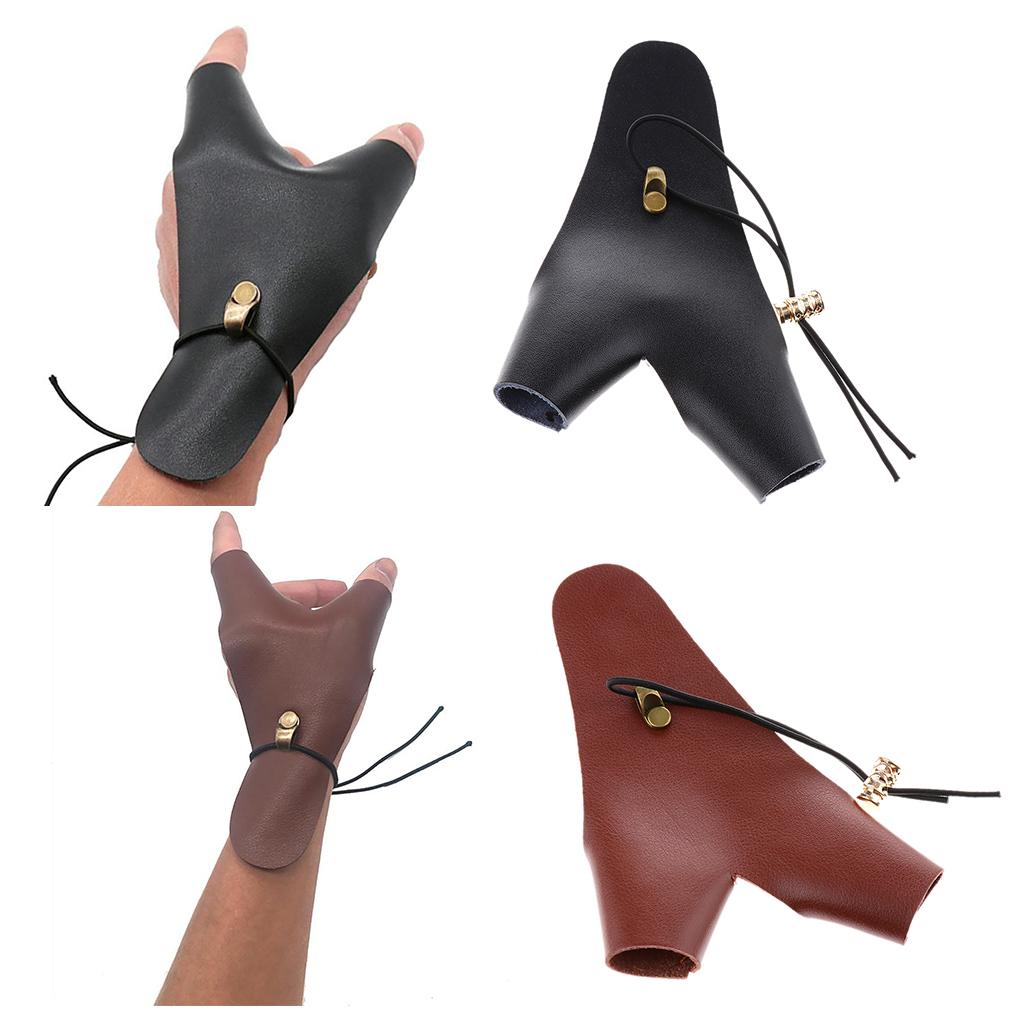 Cow Leather Archery Glove Hunting Finger Tab Guard Protector Mitts brown