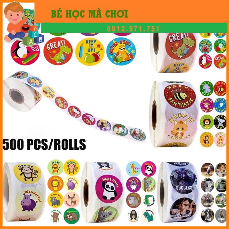 Cuộn 500 hình dán sticker khen thưởng, khích lệ động viên , tặng quà thưởng cho bé