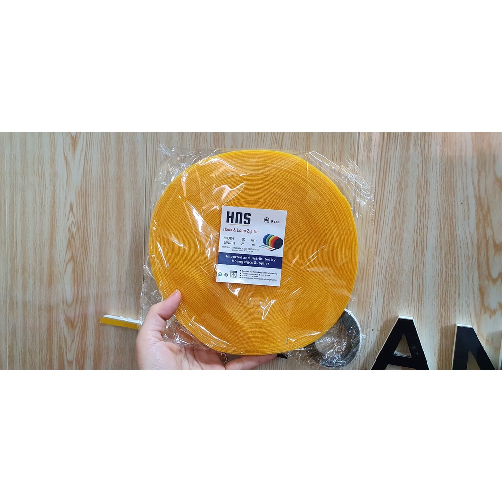 Cuộn băng dính nhám velcro băng dính 2 mặt tự dính Có 3 bản rộng 10mm, 12mm và 20mm Cuộn dài 25 mét Có 4 màu đỏ, vàng, xanh dương, đen để các bạn lựa chọn băng dính nhám thiết kế 2 mặt trái phải tự dính vào nhau rất tiện lợi. việc tháo ra và dán lại để sử dụng nhiều lần nên được ứng dụng trong nhiều lĩnh vực đặc biệt bên hệ thống mạng. Băng dính nhám HNS loại 1 độ bám dính cao, tái sử dụng được nhiều lần.