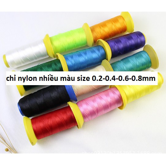 Cuộn dây chỉ nylon 210D size 0.6 & 0.8mm nhiều màu làm tua rua, may dầy dép, túi sách