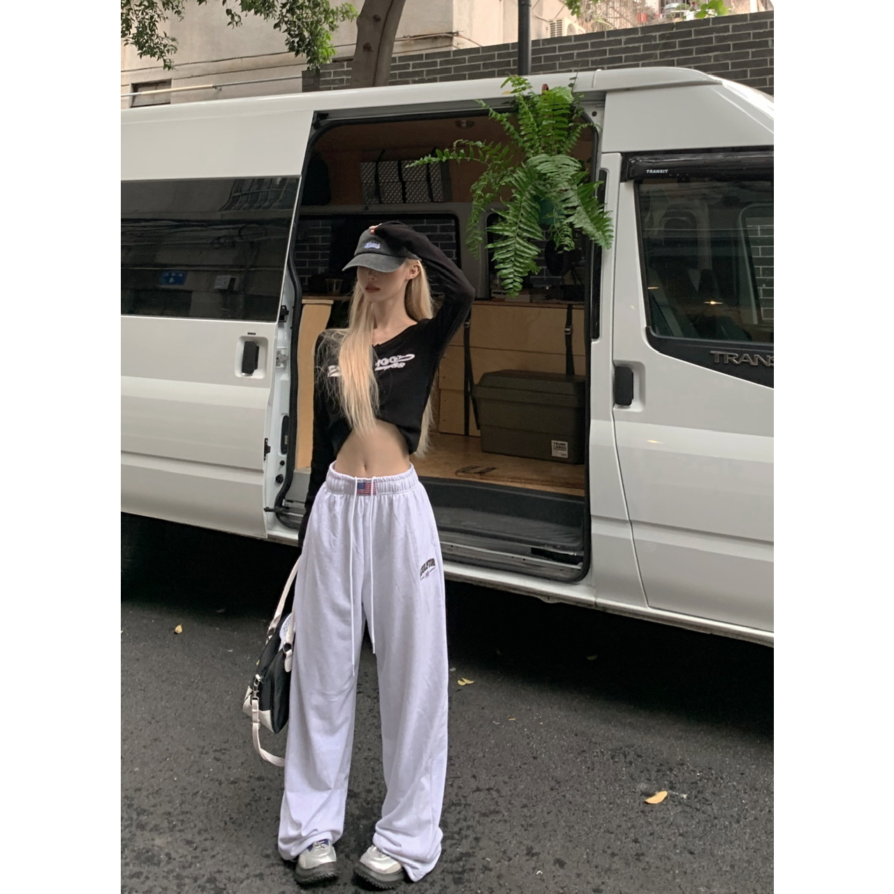「CZC」Quần Thể Thao Ống Rộng Thẳng ~ Cao Cổ Hai Màu Thể Thao Phong Cách Retro Mỹ Giản Dị Dành Cho Nữ
